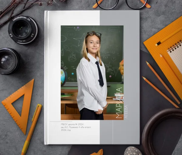 - Выпускной альбом для педагога отличается от альбома для выпускника обложкой, на которой изображено общее фото;