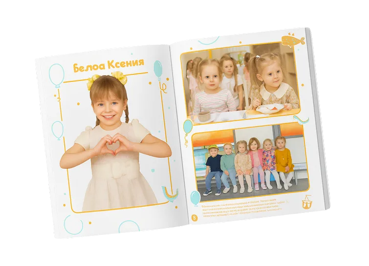 Мы предлагаем 13 вариантов оформления на выбор: «Рисунки», «Пиксель», «Африка», «Игрушки» и другие стили. Каждый альбом включает портрет ребенка, виньетки всех выпускников группы, групповые фото и снимки воспитателей.