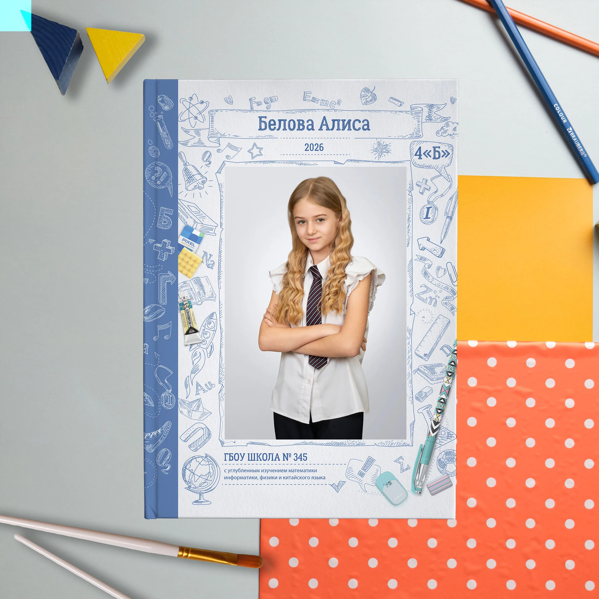 Полюбившийся многим дизайн теперь в светлом оформлении. Яркие кадры юности на фоне, напоминающем изрисованную тетрадь, непременно окунут выпускников в приятные воспоминания. Выпускной альбом в классном современном дизайне не оставит равнодушным ни одного ученика.