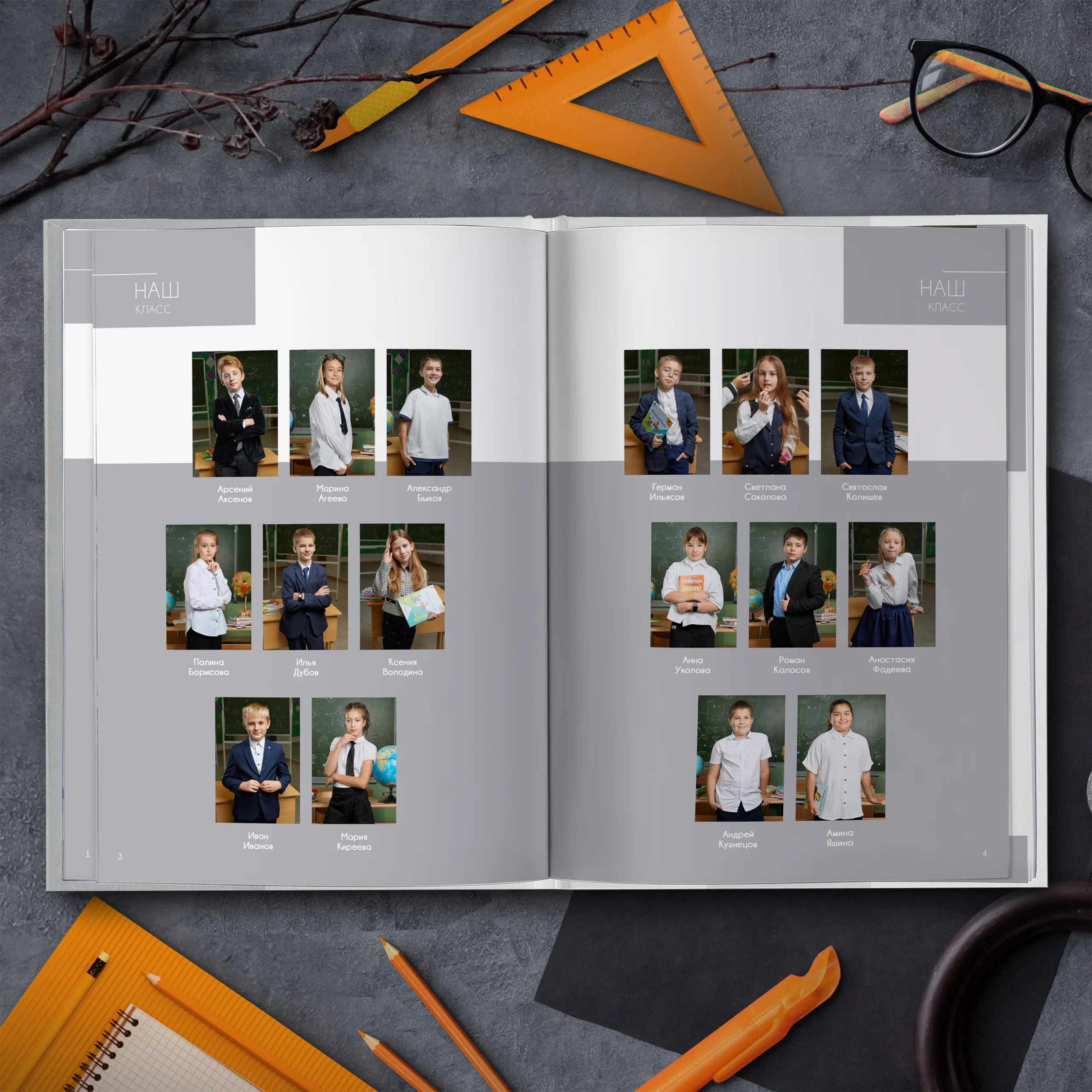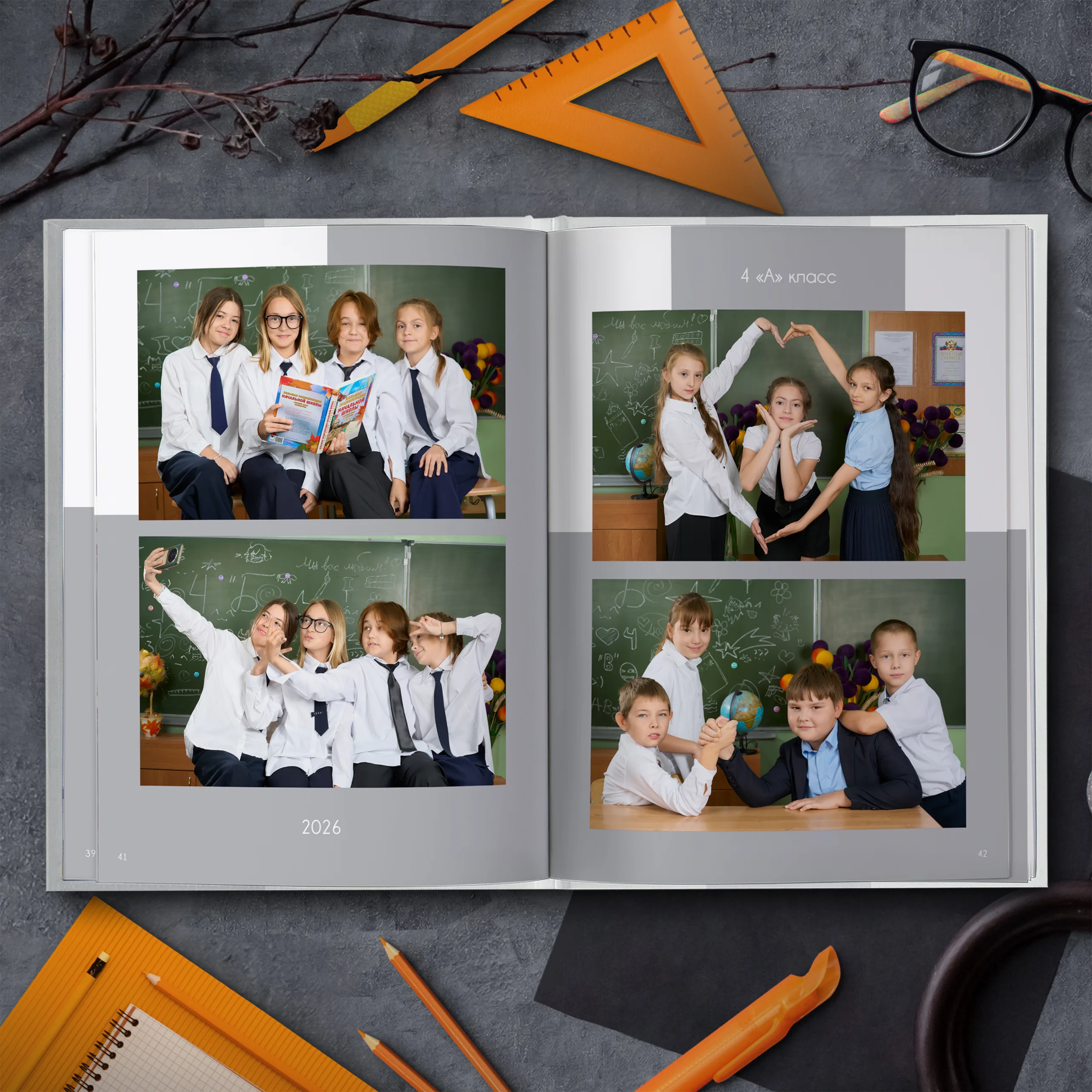 Последние 3 разворота — общие репортажные фотографии класса (20шт.)