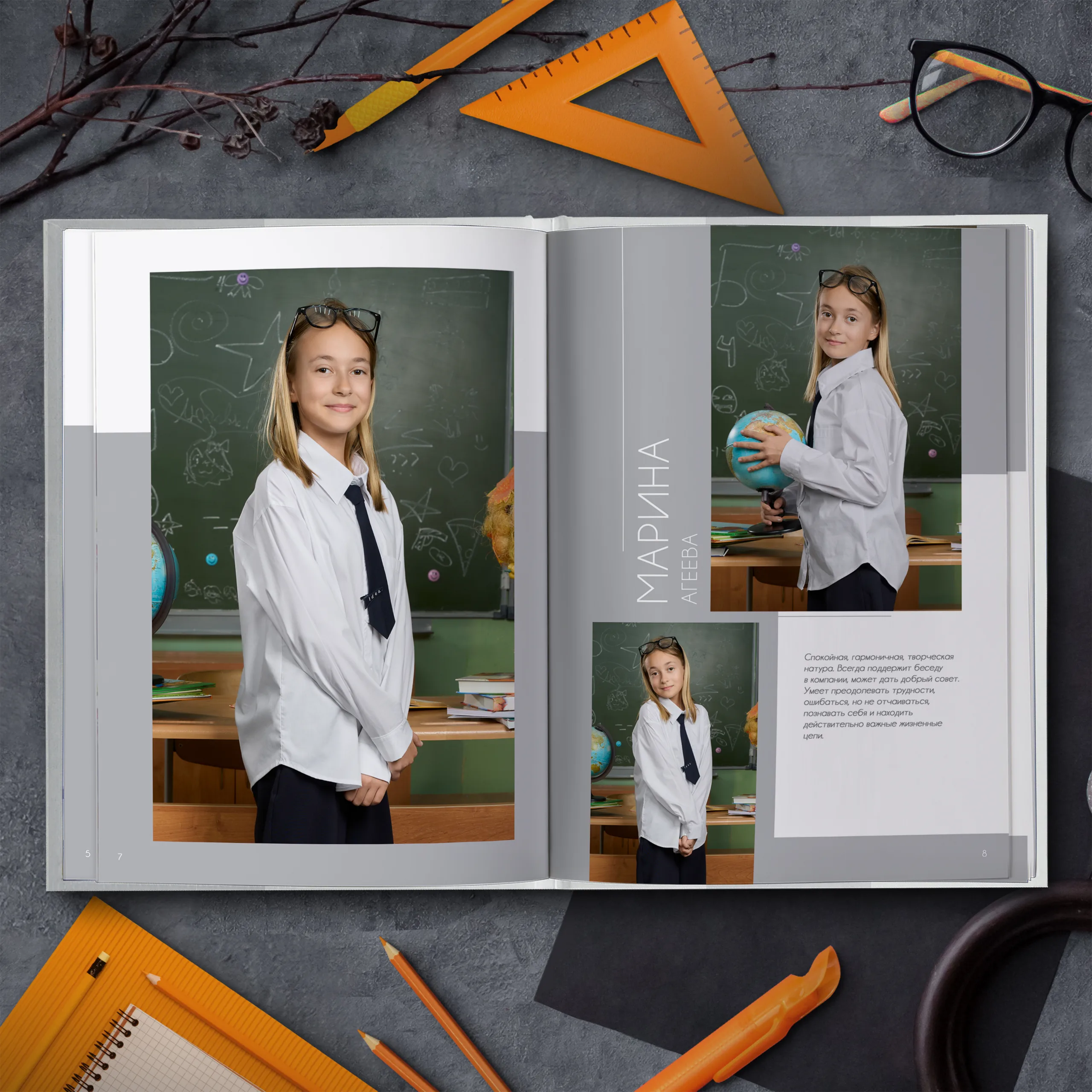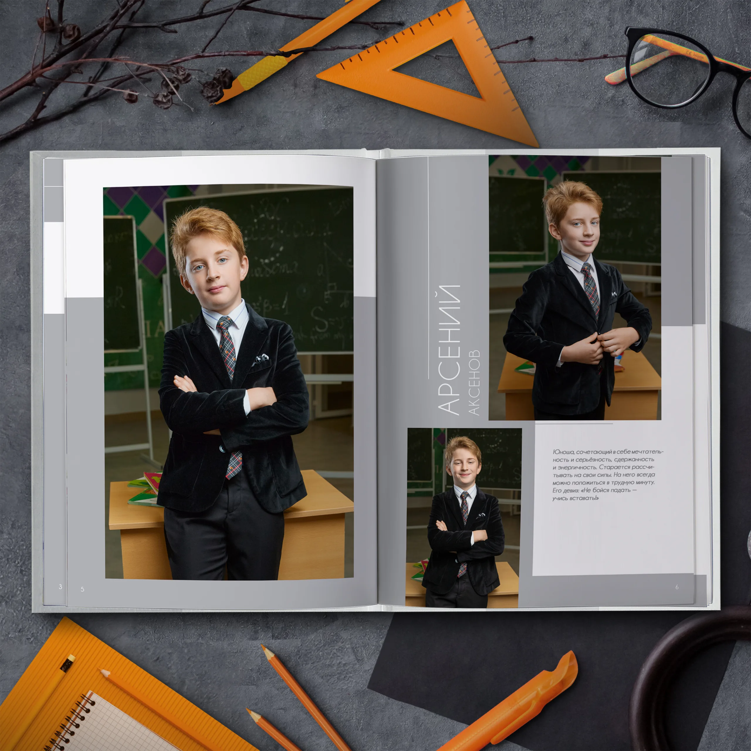 - Две личные страницы ученика с репортажными фото